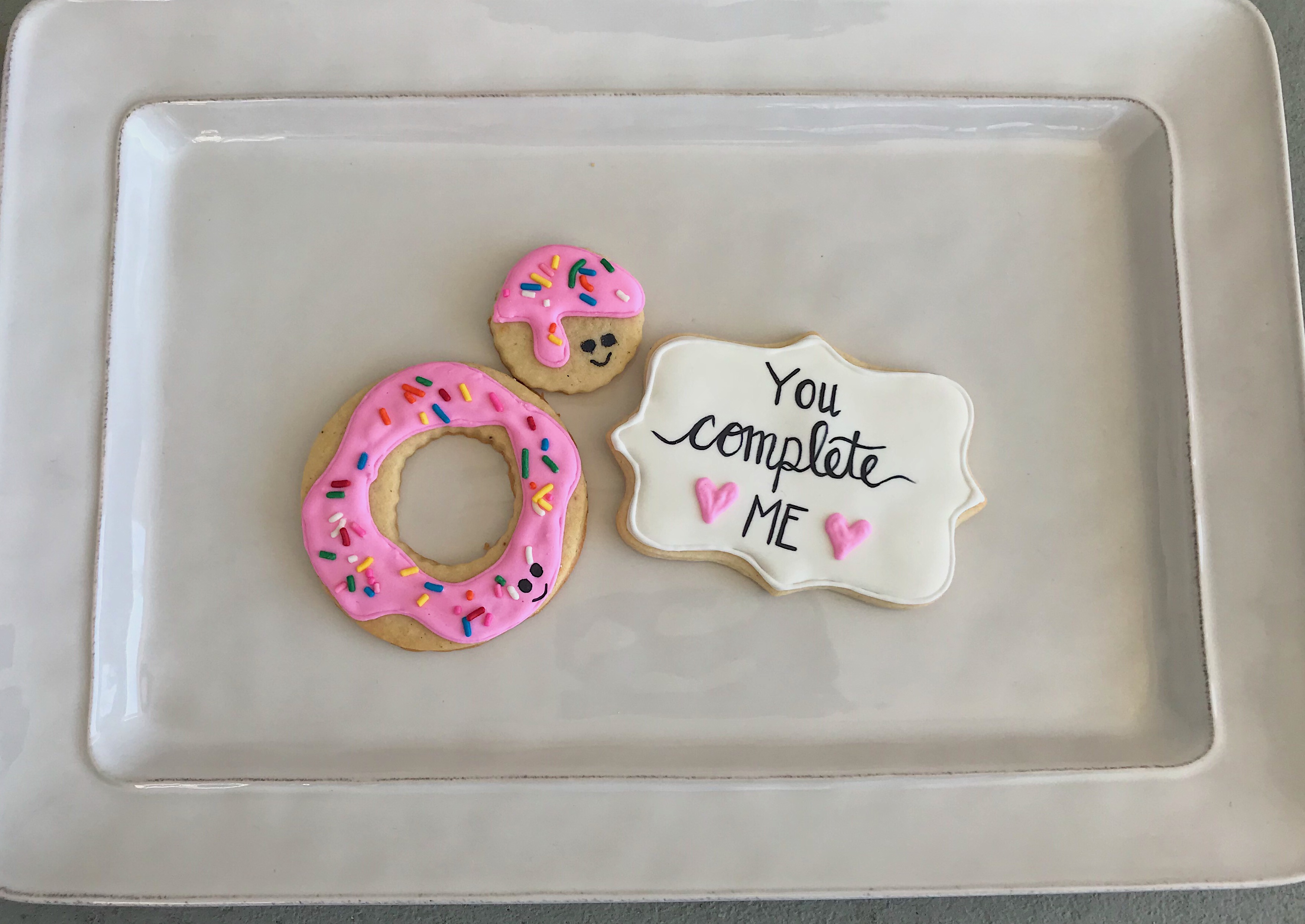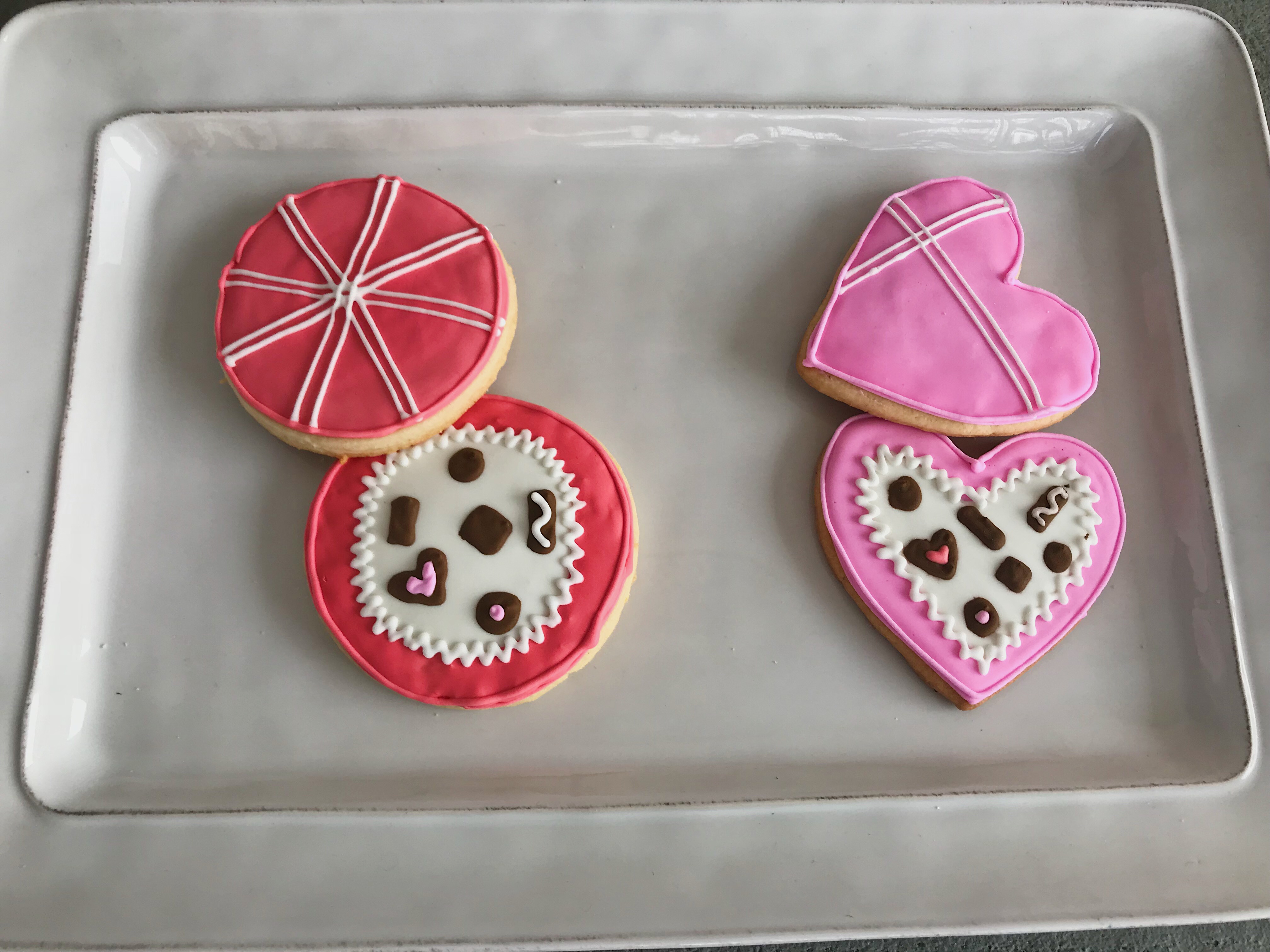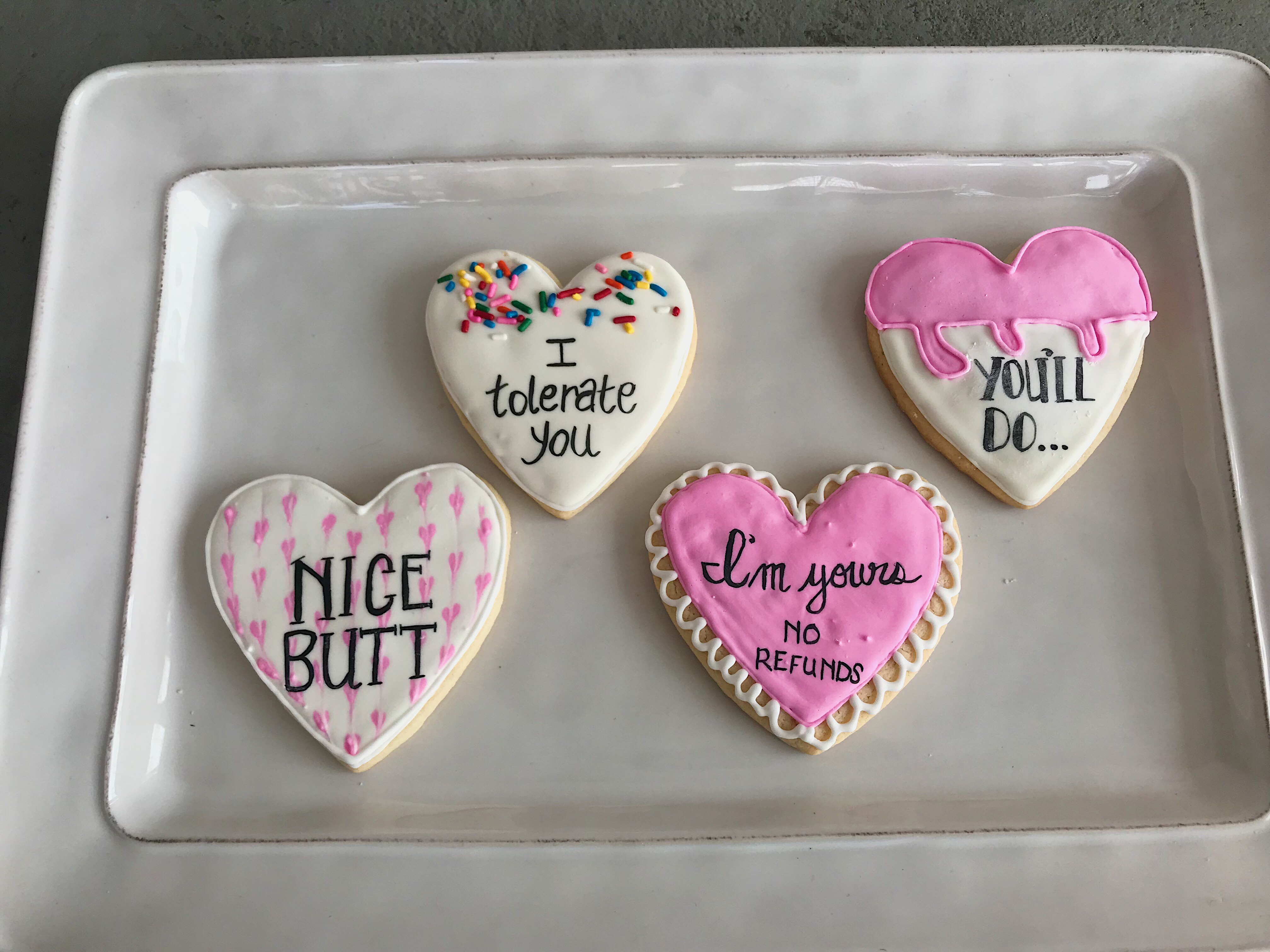 After the baby shower cookies, I couldn’t stop making cookies, thinking about cookies, or researching cookies. I made a deal with myself that I would get my dough relatively perfect before Valentine’s Day so that I could go around and sell cookies to people at work (yes, I am entrepreneurial and needed cookie supplies money). I definitley didn’t sleep that week, but I accomplished that goal and made my first sales! My icing still needed a lot of work, but they looked good and tasted great. It was so exciting to see how happy people were to purchase and eat my cookies. That’s honestly my favorite part. Here’s a look at some of the Valentine’s sets I sold.