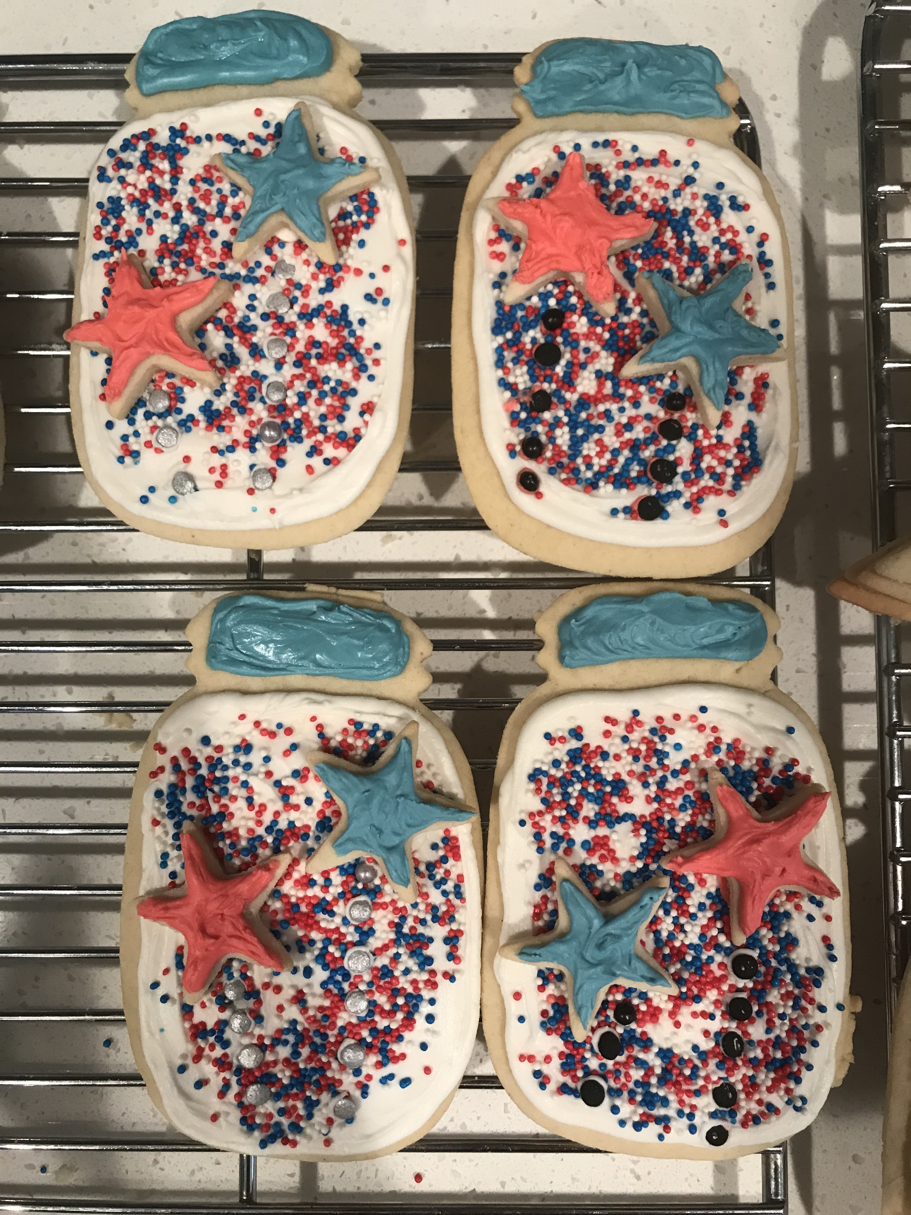 As a starving college student, I really couldn’t afford to get people gifts for a lot of occasions, so I started making cookies as my contribution. And it also gave me an excuse to be creative for a couple of hours. I acquired some different cookie cutters and started diversifying our tradition to fit other occasions. For the Fourth of July last year, I made cookies for my boyfriend’s family as a thank you for letting us stay at their beach house and for feeding us a tremendous amount of food. Here’s a look at those from 2018.